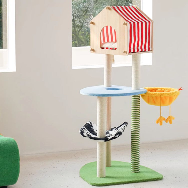 キャットタワー キャットツリー 猫タワー 猫用 高さ105cm 猫おもちゃ 省スペース ベッド おしゃれ 猫 ねこ 猫用おもちゃ 遊び場