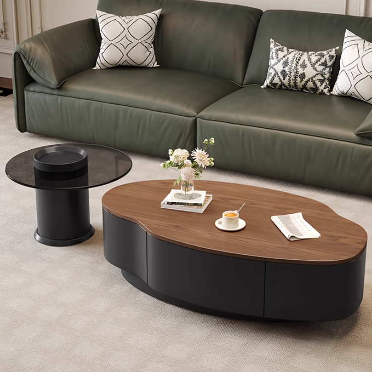 センターテーブル 丸み ロータイプ 木製 透明 楕円形 幅100cm 収納 コーヒーテーブル 120cm 引きだし付き