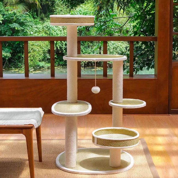 キャットタワー 猫おもちゃ キャットツリー 高さ120cm ラタン編み 猫タワー 猫用
