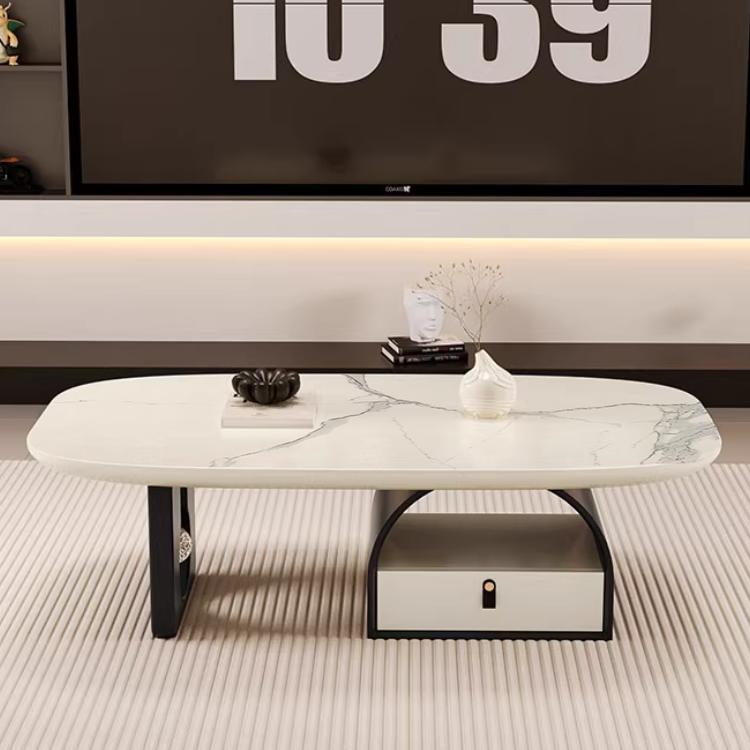 センターテーブル セラミック 幅120cm ローテーブル 楕円形 収納 大理石柄 コーヒーテーブル 105 130cm 引き出し付き