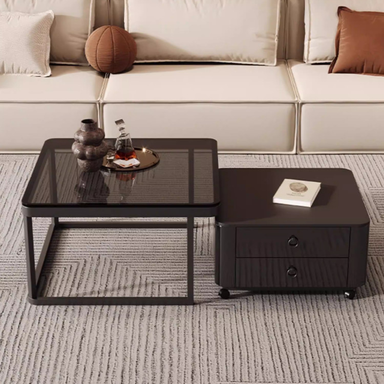 ネストテーブル 2点セット 幅80cm センターテーブル 収納 角形 70cm ローテーブル ティーテーブル 白